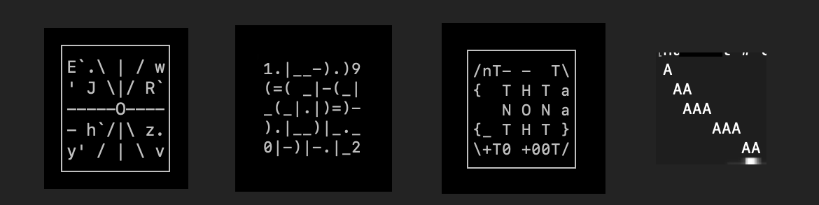 ASCII paintings realized using the neonshift prototype, an brain interface ASCII tool for the terminal.